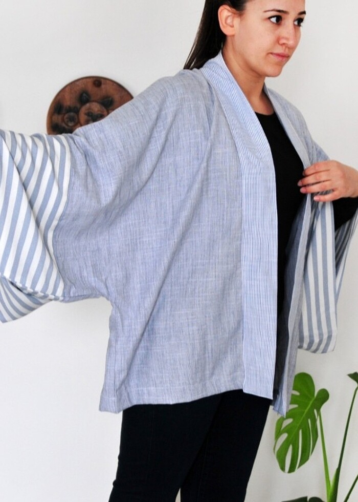 0 pamuklu kumaş, özel dikim sıfır.74 cm uzunluk, kol boyu 57 cm, koltuk altından genişlik 62 cm. model boy 160 kilo 66. çok şık kimono ceket.kuşağı yoktur.tek adettir aynısından başka kimsede yok #kimono #kimano #kaftan #sabahlık #mavikimono #ketenkimono #ketenceket #pamuklukimono #dokumakimono