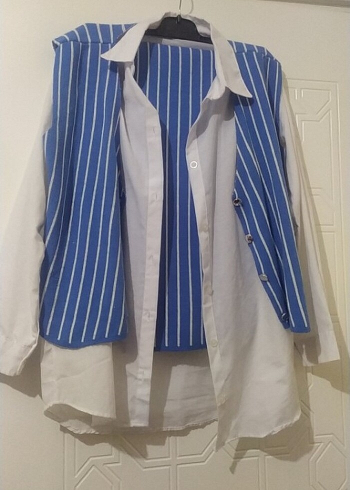 Pamuklu mavı cızgılı gömlek pantolon takımı M(38) beden