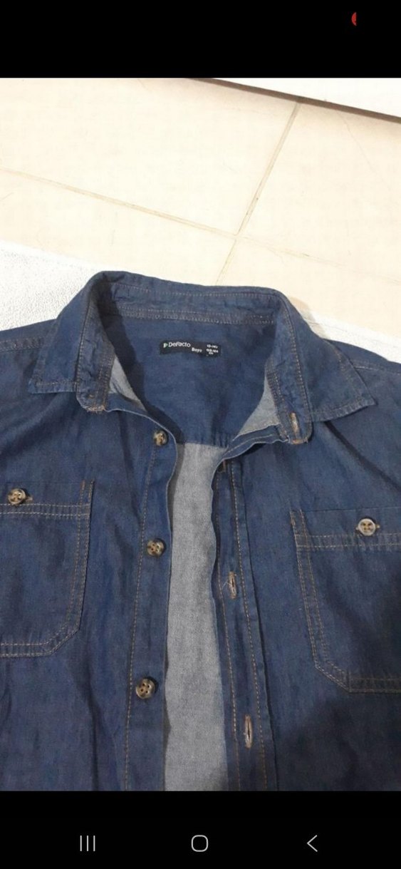 Mavi denim kumaştan, düğmeli, uzun kollu ve yakalı erkek gömleği. Rahat, günlük sokak tarzına uygundur.