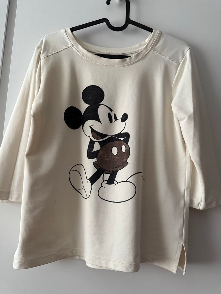 Pamuklu, yuvarlak yakalı ve uzun kollu hamile tişörtü. Önünde Mickey Mouse baskısı ve yanlarda düğme detayları bulunur. Günlük rahat kullanıma uygundur.