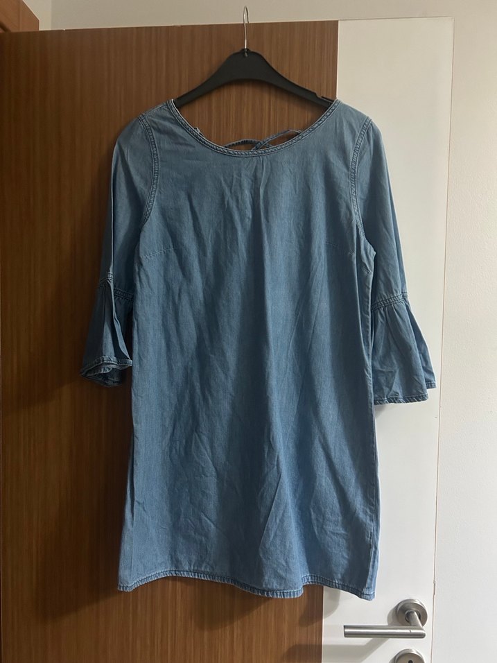Yarım kollu, bisiklet yakalı, salaş kesim midi kot elbise. Günlük kullanıma uygun, drapeli tasarımlı, trend bir görünüm sunar.