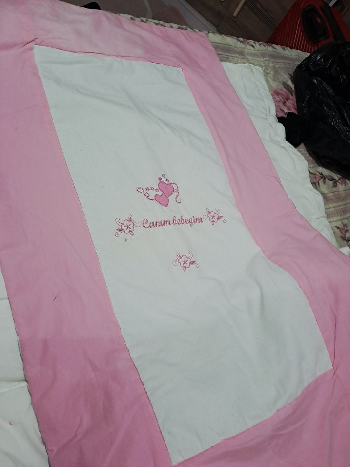 Pamuklu, pastel pembe kenarlı ve "Canım bebeğim" baskılı çocuk battaniyesi. Yumuşak ve rahat bir kullanım sağlar. ️