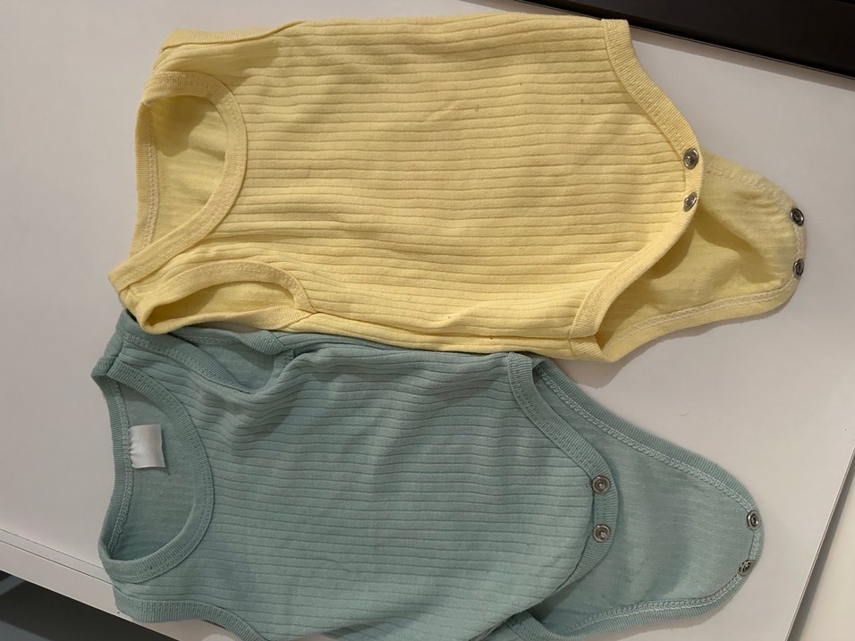 Pastel sarı renkte, pamuklu, kolsuz bebek atlet body. Yuvarlak yakalı ve düğmeli, yumuşak ve rahat kumaşlı.