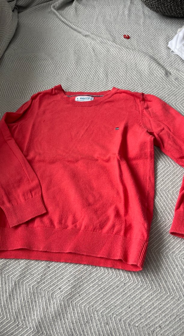 Erkek cocuk için uzun kollu, yuvarlak yaka ve bol kesim pamuklu triko kazak. Normal boyda, pembe tonların ve günlük rahat kullanıma uygun.