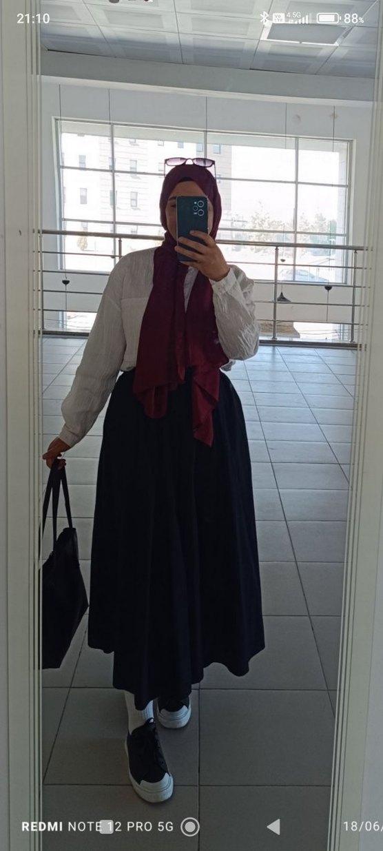 pamuklu kumaştan, bol kesim ve uzun boy etek, günlük rahat sokak stili için uygundur.