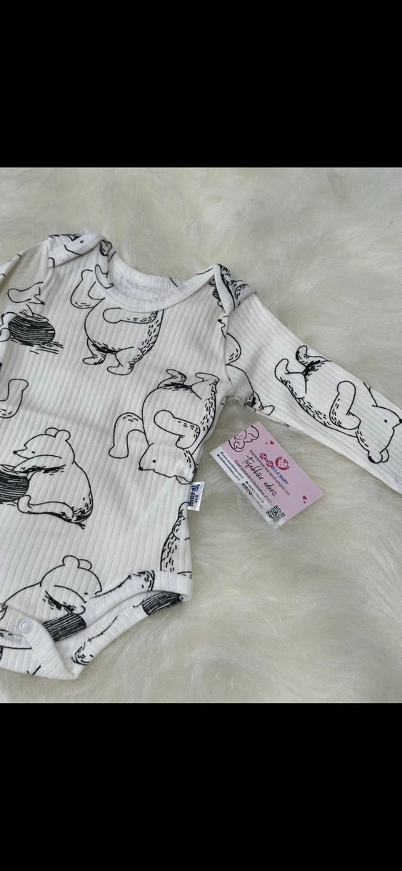 Pamuklu, uzun kollu ve düğmeli bu bebek body, baskılı desenleriyle dikkat çeker. Beyaz ve gri renklerde, rahat ve kullanışlıdır. 0-3 3-6 6-9 9-12