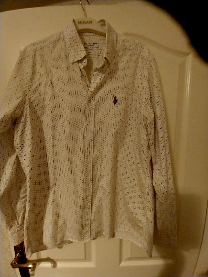 beyaz renkte, pamuklu kumaştan uzun kollu erkek gömlek. Düğmeli, yakası notch detaylıdır. Sade desensiz, regular fit kesimdir. Günlük kullanıma uygundur.