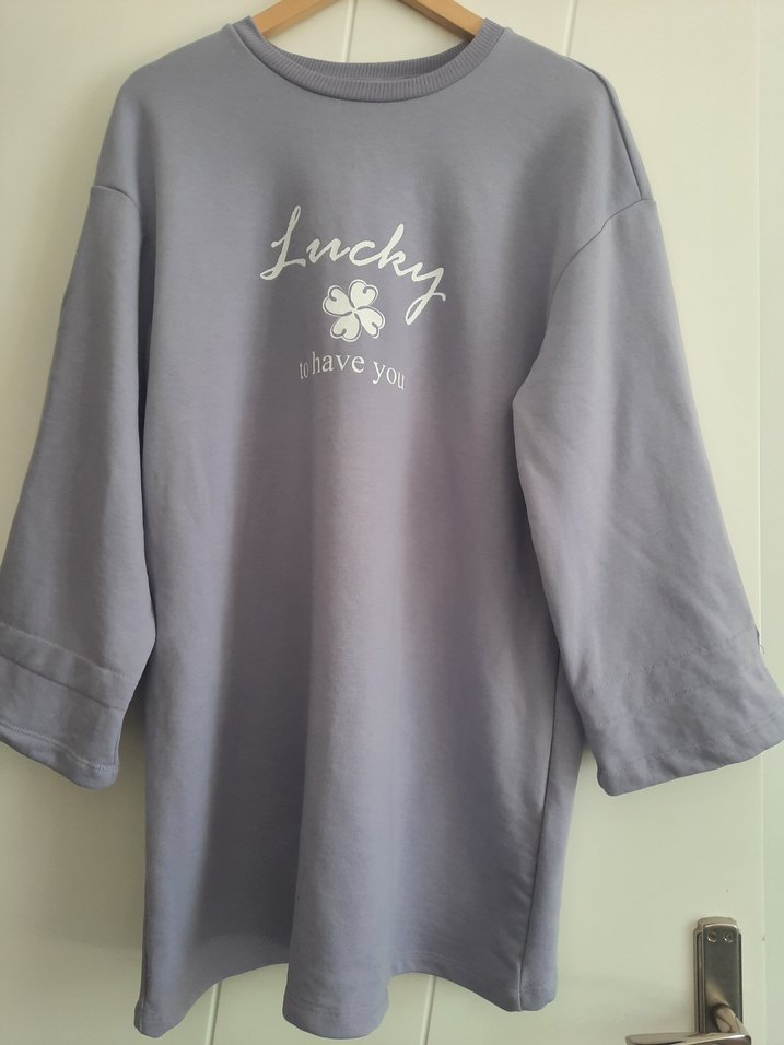 lila pamuklu, uzun kollu sweatshirt. Rahat ve salaş kesim, günlük kullanıma uygun. Resimde görüldüğü gibi iki kolunda da dikilmiş yeri var. Arzu ederseniz üzerine çiçek veya başka bir ayrıntı dikebilirsiniz.