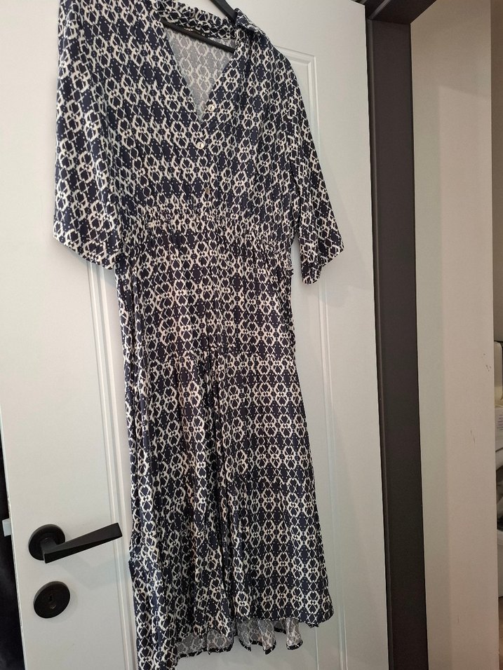 Pamuklu kumaştan üretilmiş, V yaka ve pile detaylı, bol kesim uzun elbise. bohem desenli, günlük kullanıma uygundur.