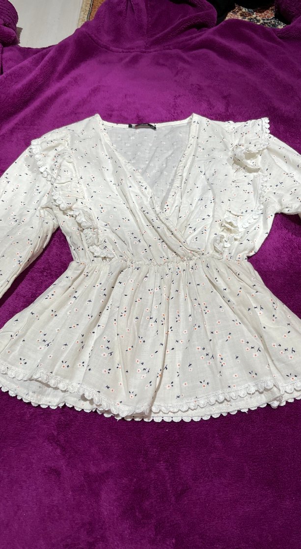 Pamuklu gevşek kesim ve kısa kolludur. V yaka ve düğmeli ön kısmı, pastel çiçek desenleri ve büzgülü beli ile rahatlık sağlar. Midi uzunlukta, vintage bohem tarzındadır.