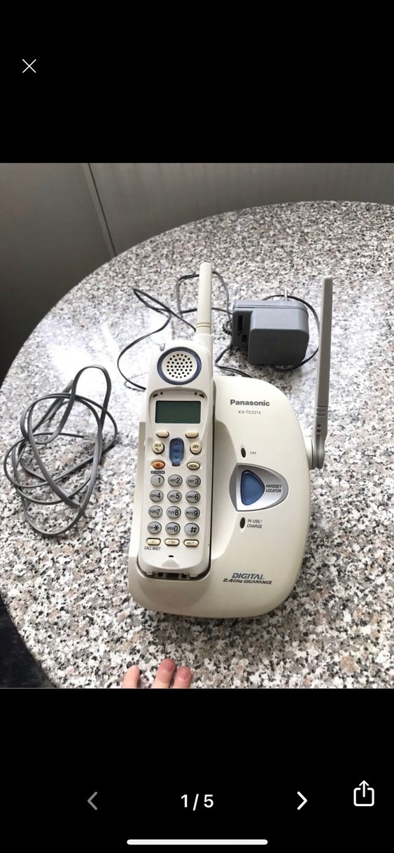 Beyaz renkte Panasonic kablosuz telefon, dijital mesajlaşma sistemi ve harici anten ile. Ahize, baz ünitesi ve adaptör dahildir.