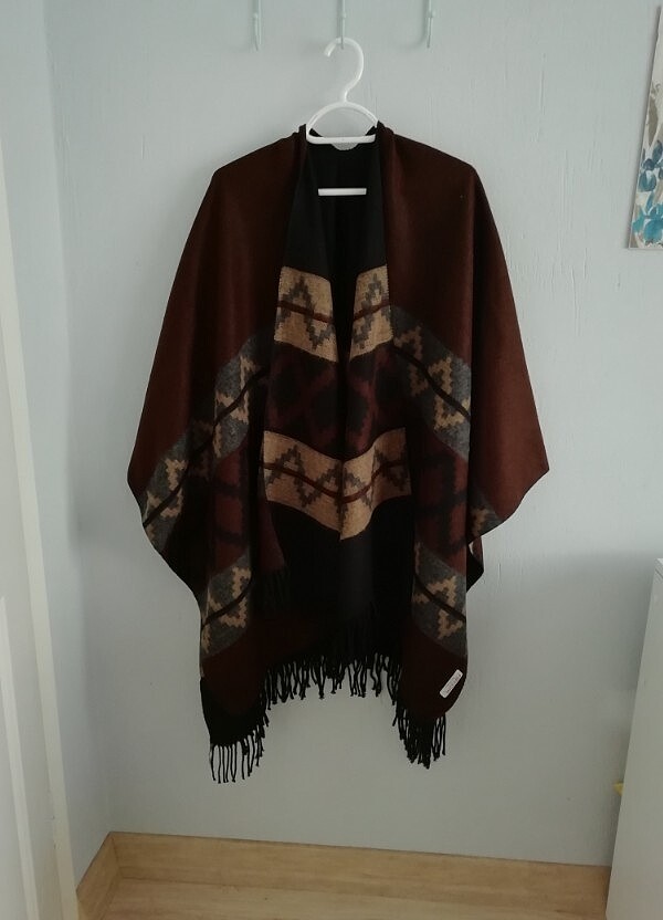 Forum marka kadın omuz şalı, panço. Sıfır ürün. Hediye geldi. Hiç kullanmadım ve satıyorum. Bir yüyü siyah, diğer yüzü kahve rengi.