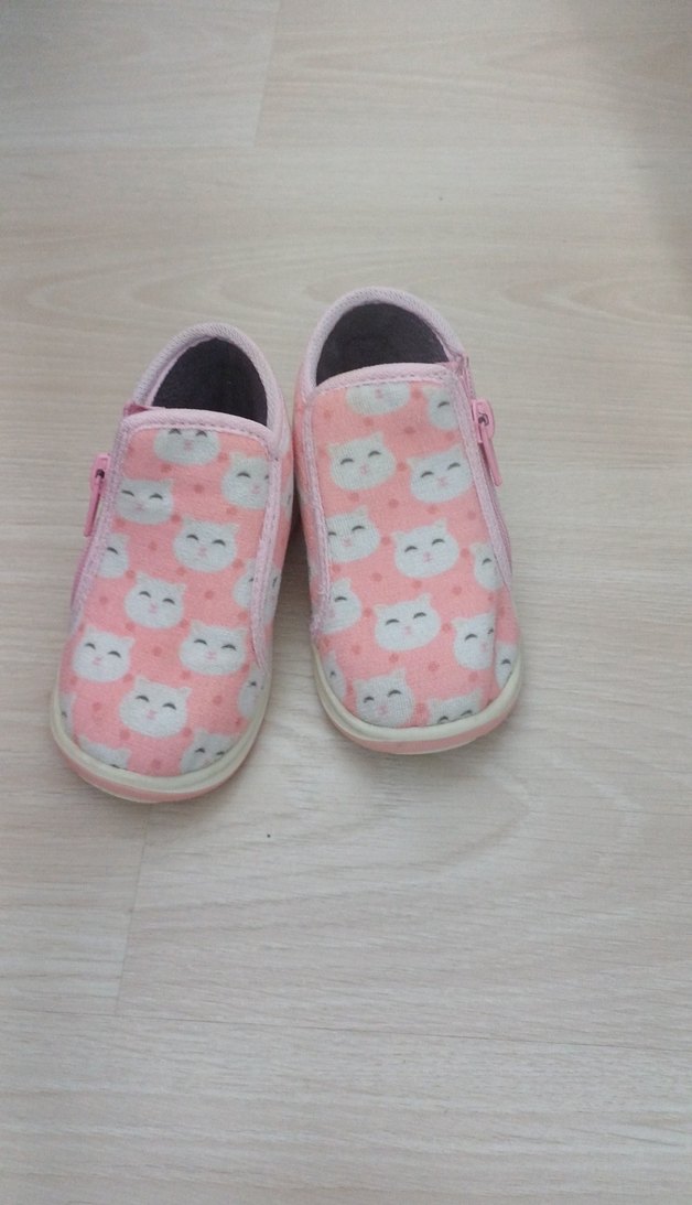 Yumuşak ve sıcak kumaştan, pastel pembe bağlama desenli, sevimli kedi figürlü kız çocuk terliği. Ayarlanabilir cırt cırtlı bant bulunur.