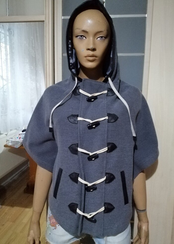 İthal Kaşe kumaştan tahta düğmeli panço