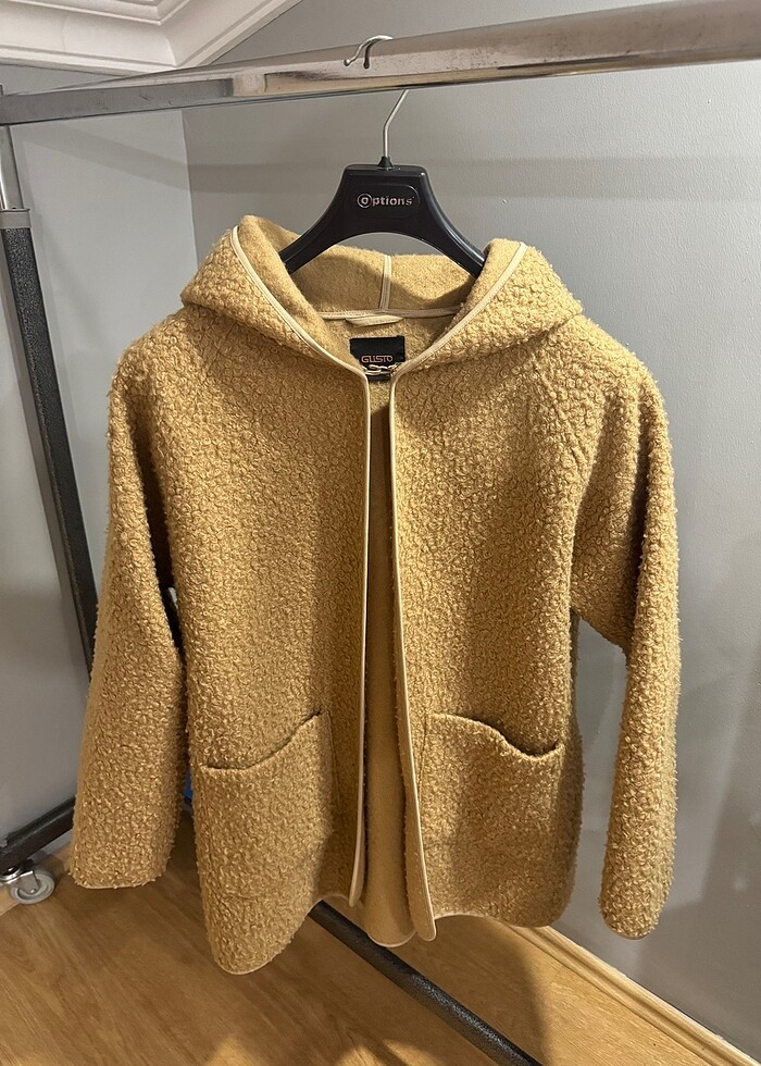 Ürün camel rengi olup panço gibi de kullanılabilir. Sıcak tutmaktadır. Az kullanılmıştır. Gusto markasına aittir.