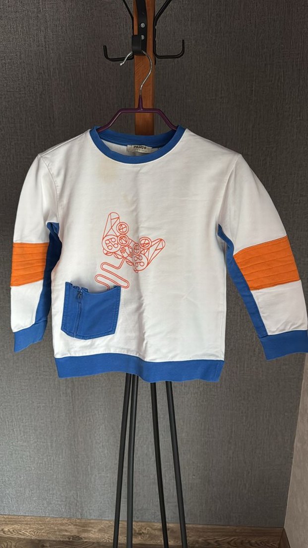 Uzun kollu, bisiklet yaka ve bol kesim erkek çocuk sweatshirtü. Yumuşak ve sıcak kumaştan, baskılı desenli, kollarında velcro detaylı ve küçük fermuarlı cep bulunur. Beyaz, mavi ve turuncu renklerde.