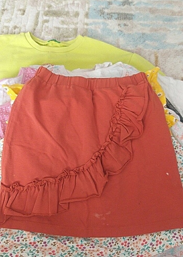 Resimde görülen lekeler var yıkanınca çıkar kullanılmadı sayılır dolapta beklemekten küçüldü kiremit rengi gibi