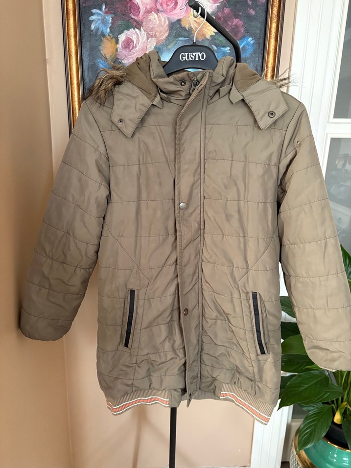 Haki Kapüşonlu Mont – 152 Beden (Çok Sıcak & Sağlam) Kalın dolgulu yapısıyla soğuk havalarda mükemmel koruma sağlar. İçi astarlı, dışı %100 polyester kumaştan üretilmiştir. Kapüşonu çıkarılıp takılabilir, pratik kullanım sunar. Kol ağızları ve etek ucundaki triko kısımlar minimal derecede yıpranmış, iç astarında küçük bir sökülme mevcut (fotoğraflarda detaylı şekilde gösterilmiştir). Bunun dışında montun genel durumu oldukça iyi, dikişleri sağlam, ısı yalıtımı yüksek ve oldukça sıcak tutar. Ölçüler: • Boy: 74 cm • İki kol arası: 49 cm Renk: Haki Beden: 152 Kapüşon: Çıkarılabilir Kumaş: %100 Polyester, Astar %100 Pamuk Durum: İyi (astarda küçük sökülme, triko uçlarda hafif yıpranma mevcut) ⚠️ Fotoğraflar ve ölçüler dikkatlice incelenmelidir, iade kabul edilmemektedir. #kaban #mont #haki #çocukmontu #kışlık #kalınmont #kapüşonlu #astarlı #sıcaktutan #dolapsatış