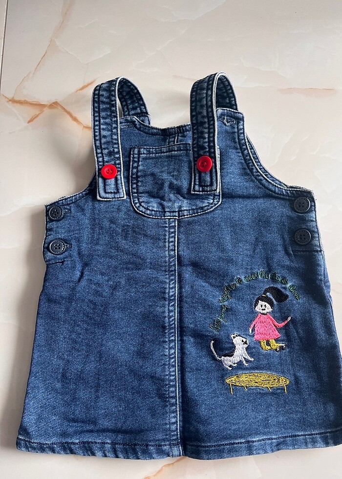 Panço köşesi işlemeli 6-12aylık kot elbise tertemiz ürün