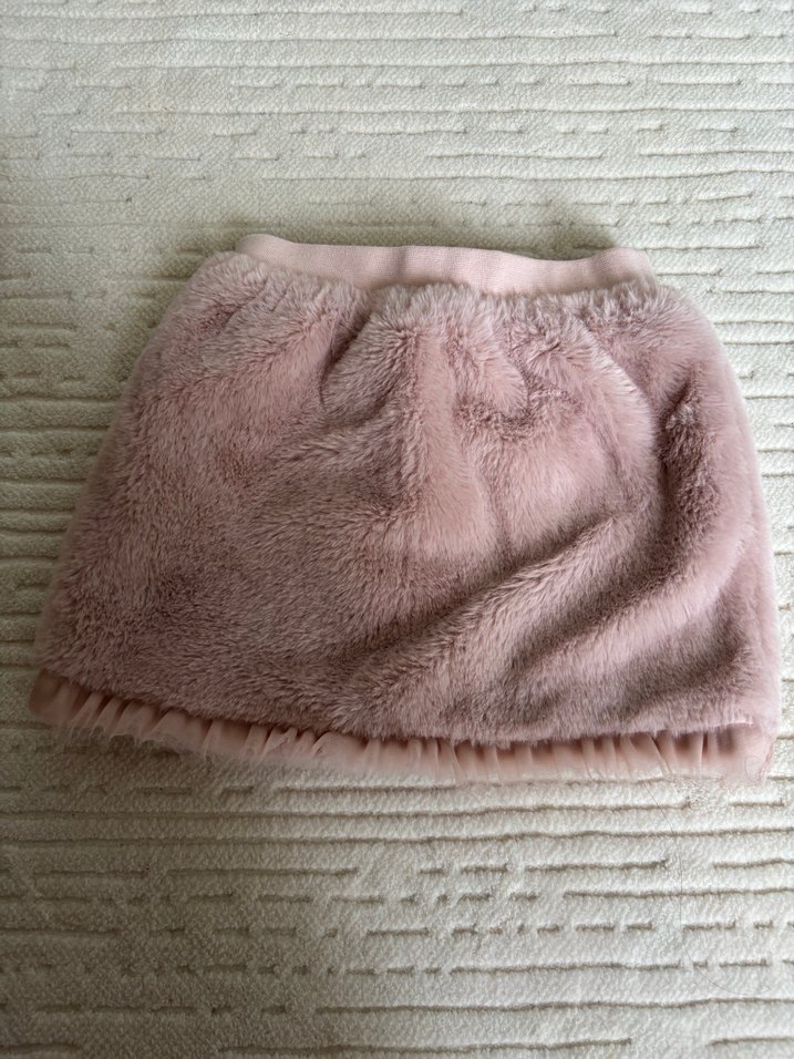 Kız çocukları için pastel pembe renkte, kürklü detaylı ve yumuşak dokulu, düz ve sade kesimli bir mini etektir.
