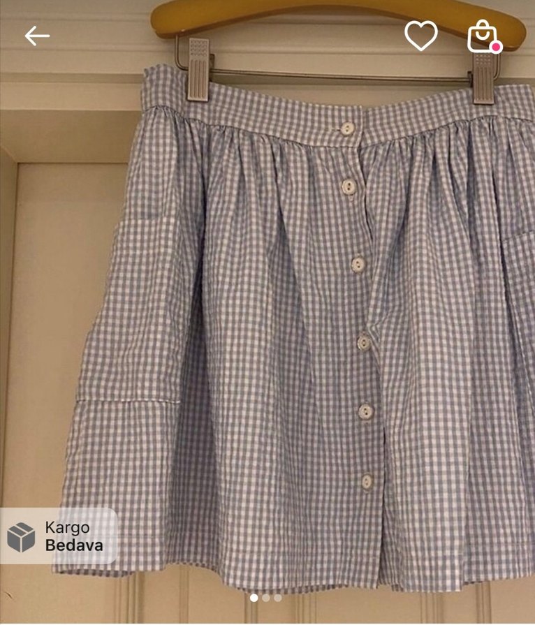 Düğmeli ön kısmı ve bej-gri kareli desenli, pamuklu kumaştan yapılmış bol kesim hamile midi etek. Günlük kullanıma uygun rahat ve Paris tarzı normcore model. Bedava kargo.