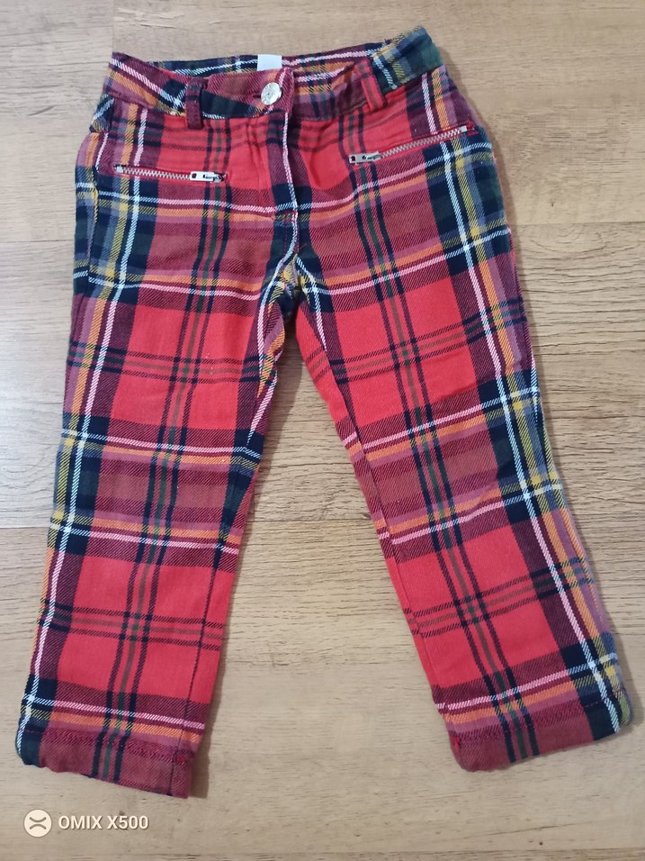 Renkli kareli desenli, düğmeli, kız çocuk pantolonu. Yumuşak ve sıcak kumaştan, sokak stili için uygun.
