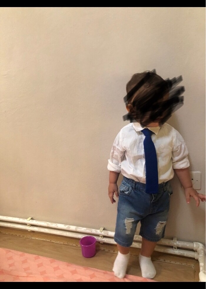 Bayram kombini olarak kullandık şort ve gömlek yırtık kot şort yumuşak ayarlanabilir bel uzun kol katlanabilen klasik beyaz gömlek her iki parçada panço’nun bir yaş için uygun Ayrı ayrı da satılabiliryor takım olarakta