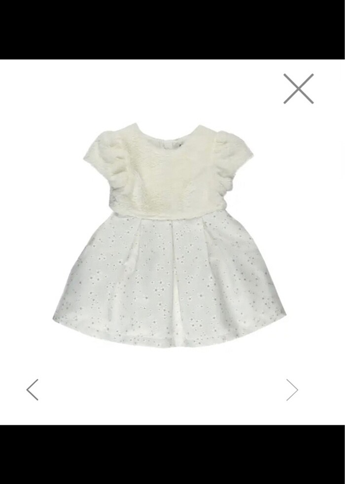 Ürünü sadece bayramda nişanımız oldu o zaman kullandı. Satın aldıktan sonra ve nişandan sonra yıkadım sadece. Panço mağazasından alınmıştır. Şu anda kendi sitesinde peluş montsuz. Ayrıca peluş montu ile birlikte almıştık. O şekilde satıyorum. Peluşları birebir aynı takım şekilde mağazadan almıştık. Etek kısmında papatya detayları vardır. Çok güzel şık bir elbise, çok kaliteli aşırı memnun kaldım. Fiyat son fiyattır. Elbise 6-12 ay için uygundur. O şekilde seçilmiyordu 6-9 ay olarak ilana koyabildim, 68/74 cm için uygundur.