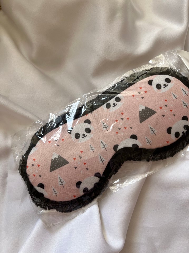 Pembe renkli, pastel panda desenli uyku maskesi, elastik bant ile rahat kullanım sunar. Bohem ve retro tarzıyla konfor sağlar.
