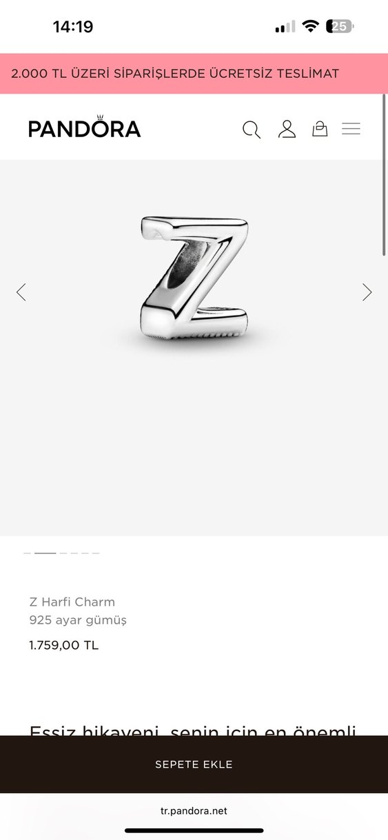 Pandora 925 Ayar Gümüş Z Harfi Charm