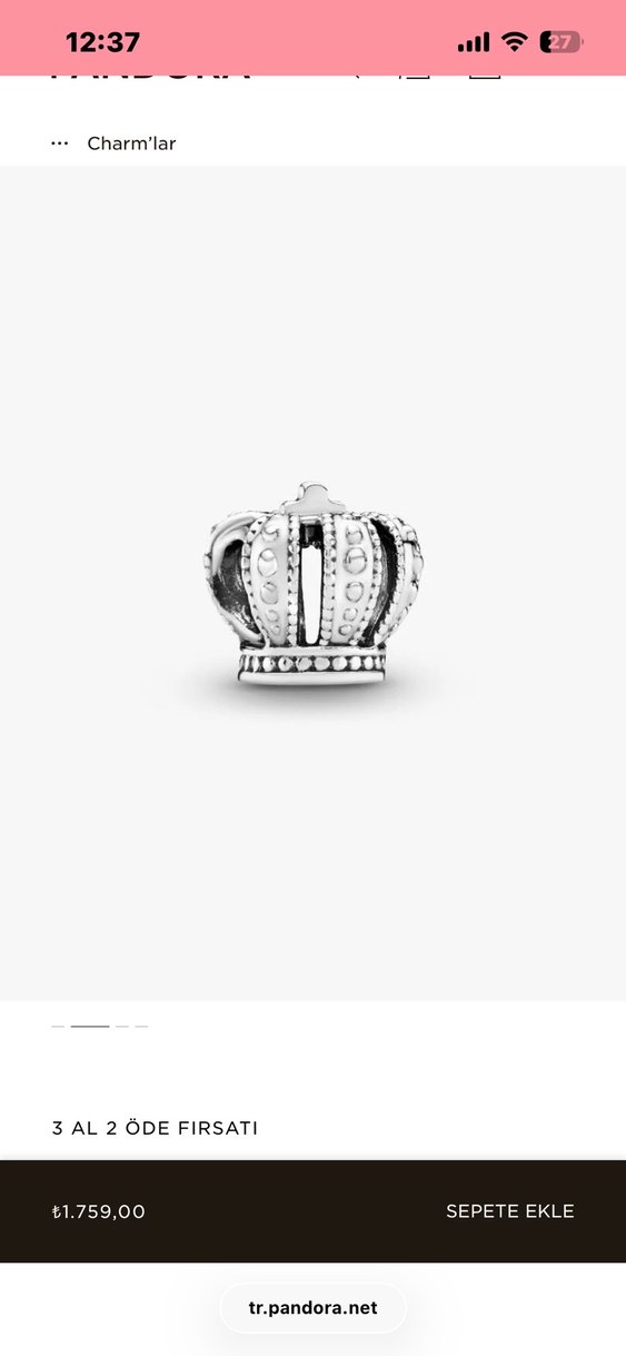 İnci detaylı, desenli beyaz taç şeklinde parlak charm. Sertifikası var fakat bilekliğimle beraber aldığım için sertifikası bilekliğimide kapsıyor,sertifikasız gönderiyorum
