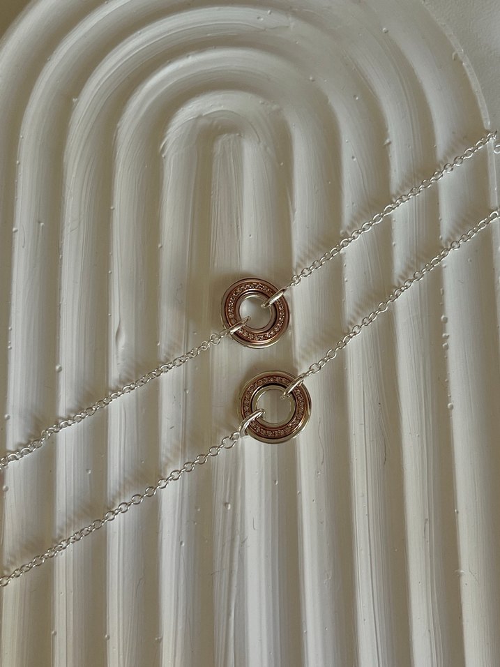 Pandora halka ve zincir detaylı ve işlemeli parlak halkalara sahip bileklik , minimalist ve klasik zarafet sunar.