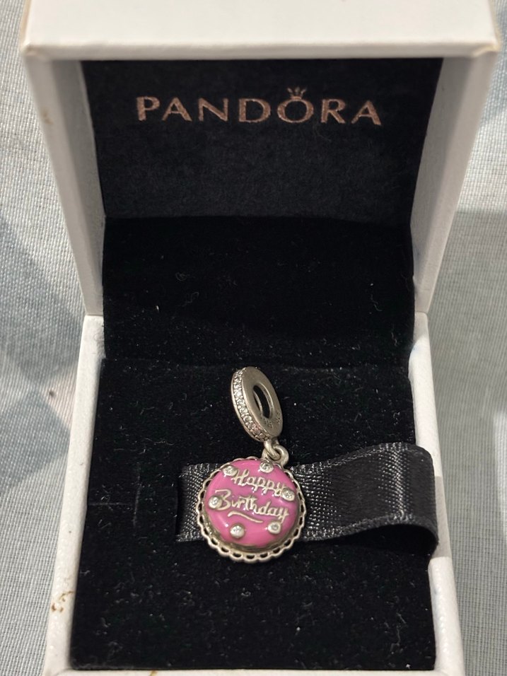 Pandora'nın pembe pastalı charm'ı "Happy Birthday" yazısıyla ve arkasında ki “make a wish” yazısıyla hediye alınmak için anlamlı. Bana da hediye gelmişti kutusundan hiç çıkartmadım. Kutusuyla gönderim yapabilirim.