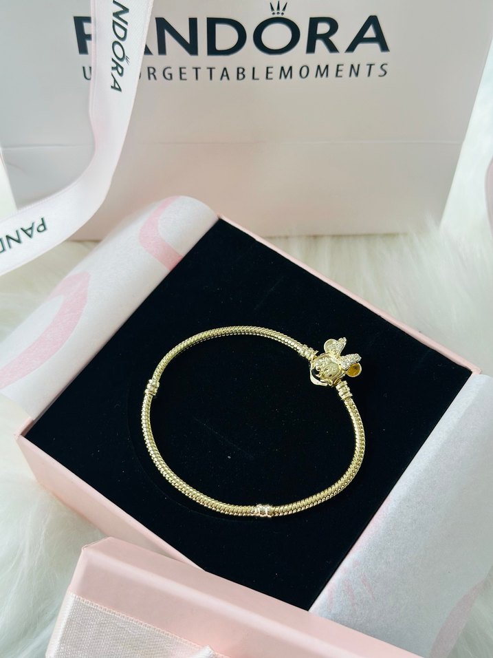 Pandora Gold Disney Işıltılı Minnie Bileklik, 17 cm olçüsü mevcuttur, Pandora özel kutusu ile gönderim saglanmakta, Yurtdışı ürünü fotograftaki gibi arka kısmında Pandora damgası mevcut çelik kordon üzerine gümüş kaplama kararma kesinlikle yapmaz, Sertifikası mevcut. Son fotograftaki gibi özenle paketlenip gönderilmektedir! #pandora #pandorabileklik #pandorayüzük #çeliktakı #orijinal