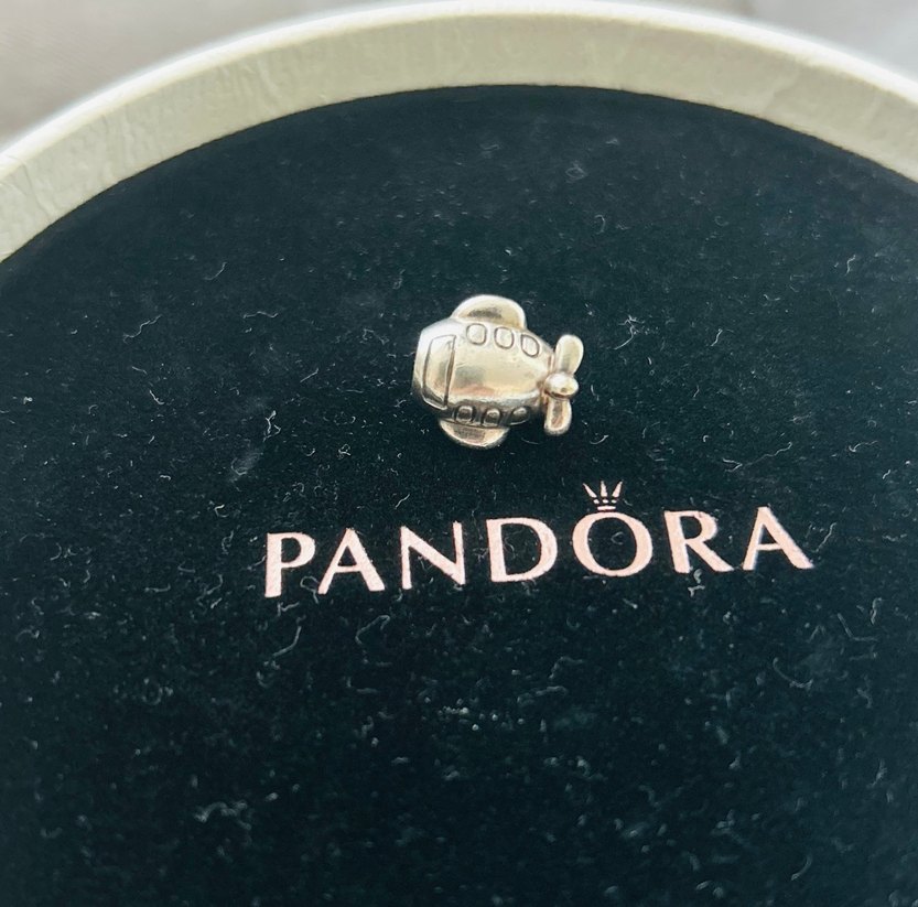 Pandora markalı, gri tokalı ve altın detaylı kadın biker tarzı charm. Romantik akşamlar için uygun, üzerinde 'PANDORA' ve '925 ALE' işaretleri bulunur.