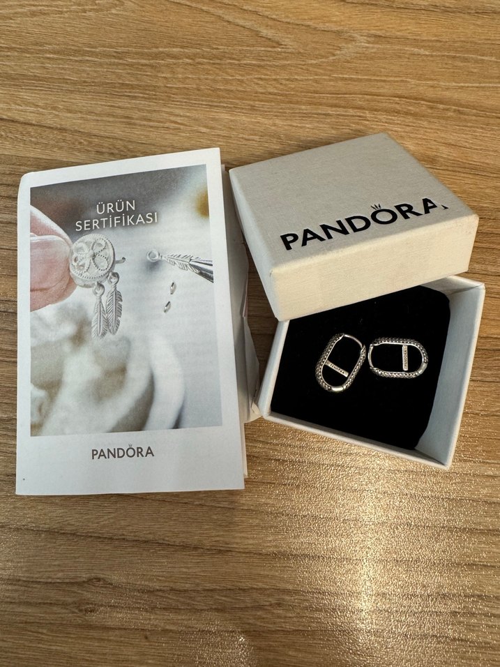Pandora gümüş Pave taşlı küpe iki adettir. Sertifikalı faturalıdır göründüğü üzere garantisi devam etmektedir. Herhangi bir sorunu yoktur kararması yoktur temiz üründür çok az kullanılmıştır