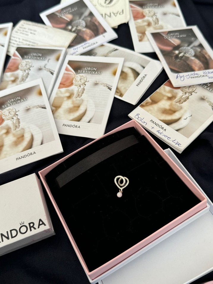 Pandora iki renkli sarılı kalp charm. Tüm pandora ürünlerim sıfır gibi, bazılarını 1 2 kere takmışımdır bazılarını hiç kullanmadım kutusuyla duruyor. Sertifikalı ve kutulu şekilde gönderiyorum. Fotoğraflarda damgalarını çektim bakabilirsiniz. 3 ve üzeri alımlarda gümüş charmlarımdan ve mini nutella kavanozlarından gönderiyorum
