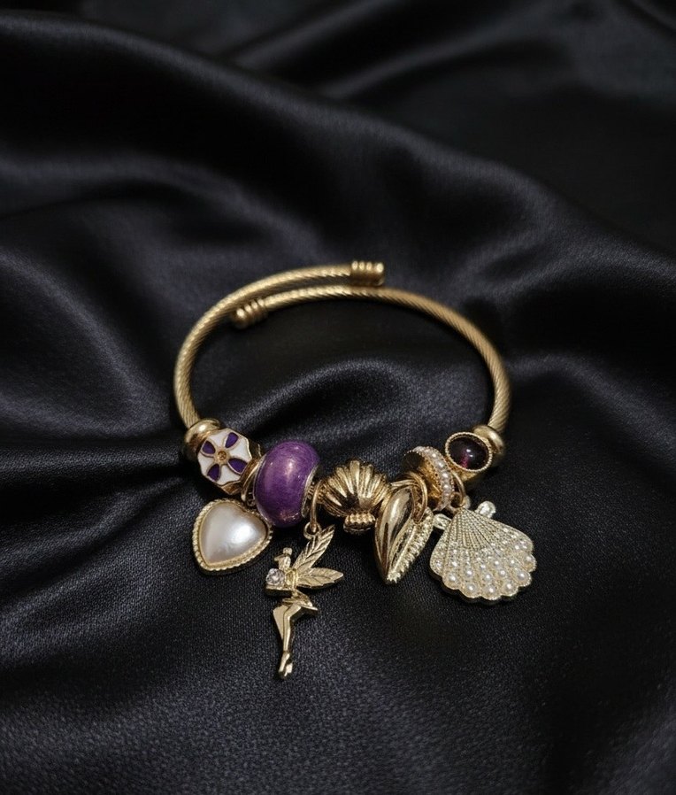 Pandora incili perili deniz kabuklu charm çelik bileklik