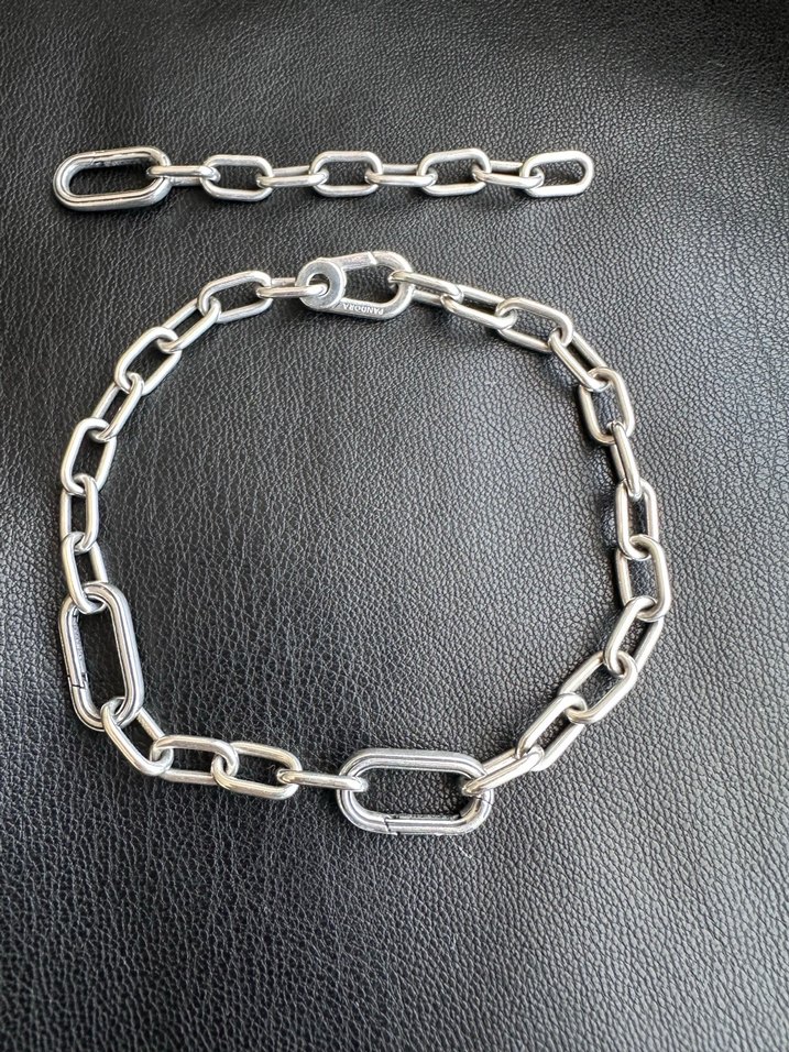 Uzatma zinciri var, 17,18,19,20 cm olabilmektedir. çok iyi durumda orjinal pandora me bileklik, fotoğraflarda fatura sertifika ekledim.