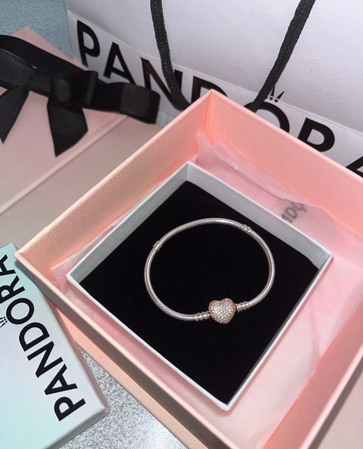 Pandora moments 14 ayar pembe altın kaplama pave kalp klipsli