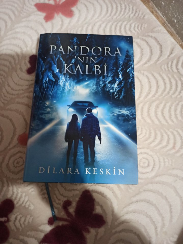 Dilara Keskin'in Pandora'nın Kalbi adlı romanı, karanlık ve gizemli atmosferiyle iki figür ve araba temalı kapak tasarımına sahip.