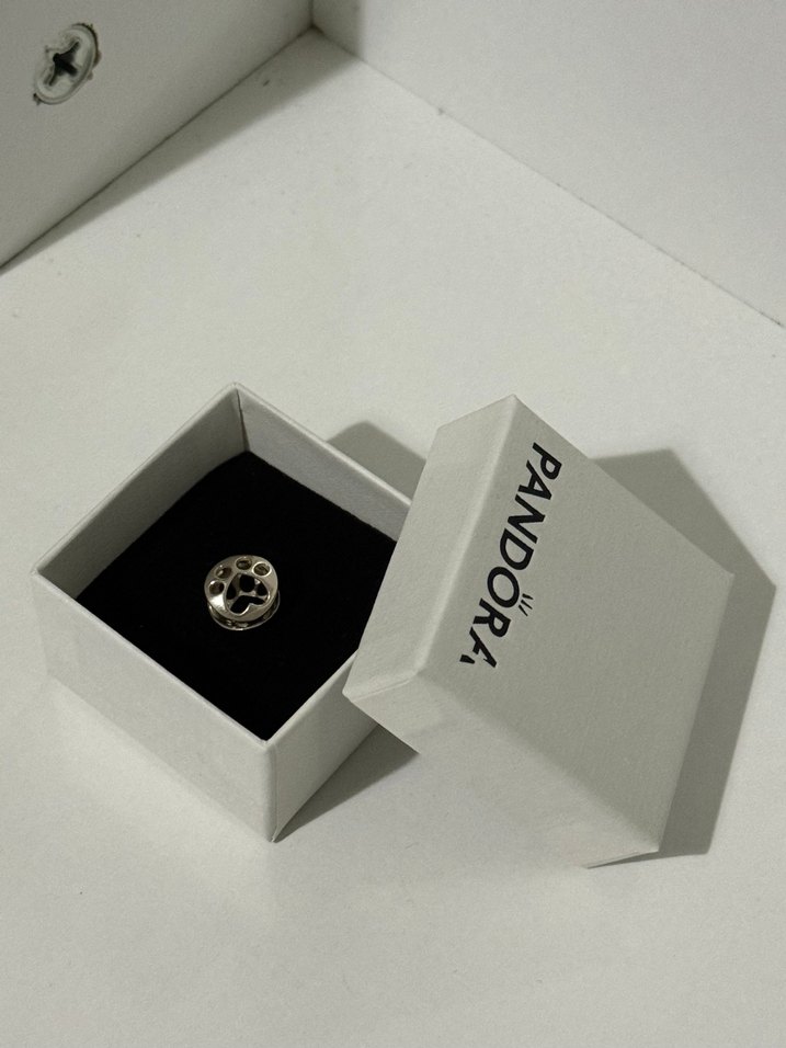 Pandora marka, düğmeli ve baskılı desene sahip gümüş renkli kadın charm, klasik Paris tarzını yansıtır. Günlük kullanıma uygundur. ✨