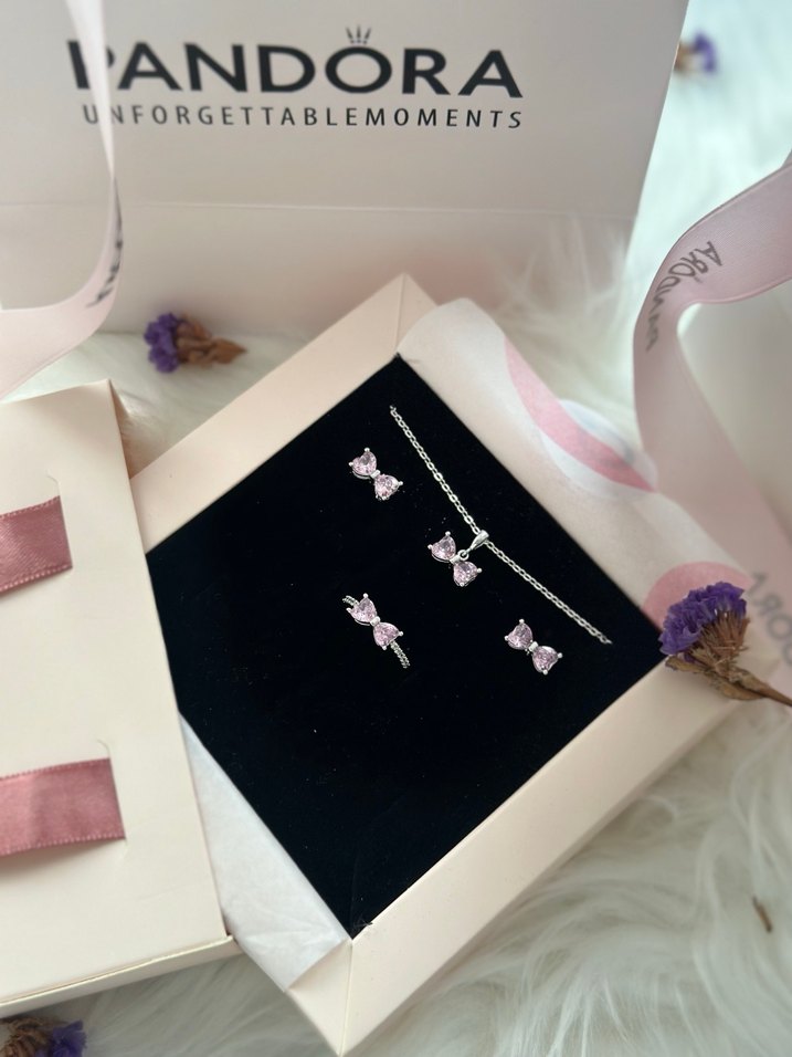 Pandora Pembe Işıltılı Fiyonk Set