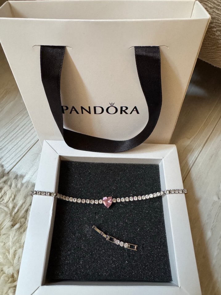 Pandora marka, hafif pembe kalp detaylı zincir bileklik, romantik akşamlar için şık ve gündelik tarzda kullanıma uygun. Sayılı kullanıldı damgaları mevcut orijinalle birebir