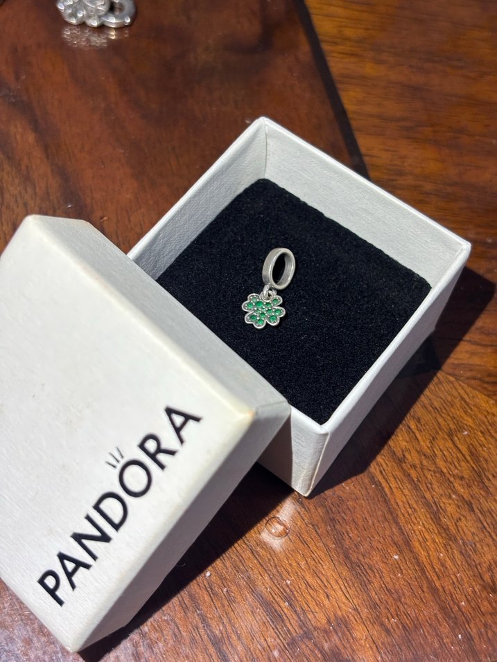 Pandora markalı, parlak yeşil boncuklu ve desenli minimalist charm, günlük kullanıma uygun klasik şıklık sunar.