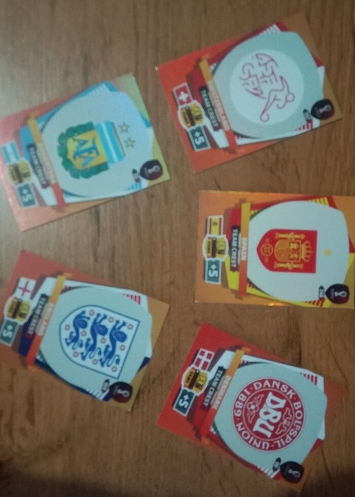 Panini Dünya kupası 2022 Dünya kupası'na katılan 5 takım kartı İngiltere Arjantin İsviçre İspanya Danimarka