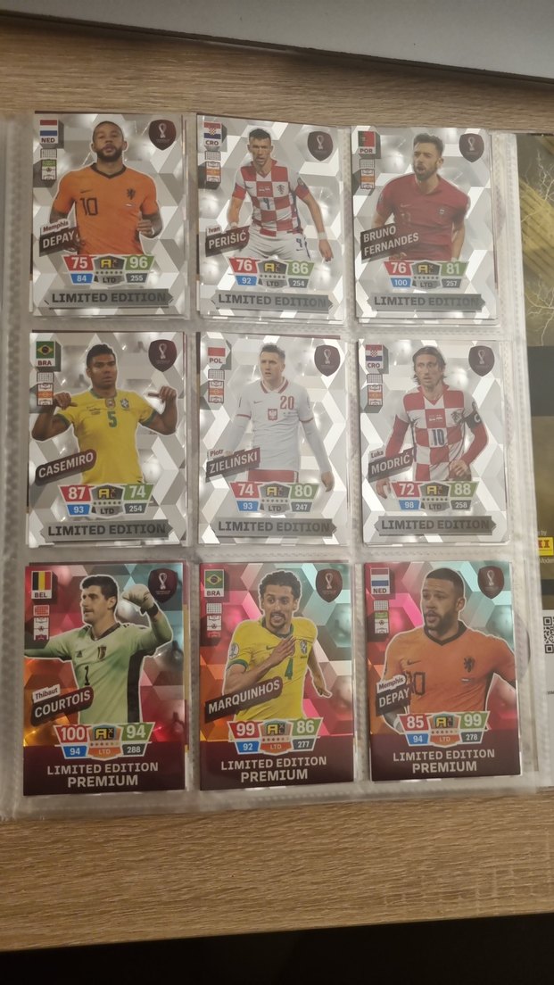 Depay, Perisic ve Courtois gibi oyuncuların detaylı istatistiklerine sahip sınırlı sayıda futbol kartları. Koleksiyonluk ve nadir. ⚽
