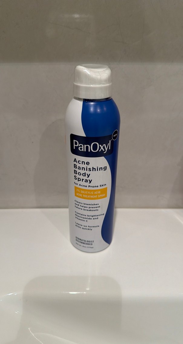 PanOxyl Akne Giderici Vücut Spreyi, sivilce lekelerini temizler ve yeni çıkmasını önlemeye yardımcı olur. Hızlı emilir ve cildi aydınlatır.