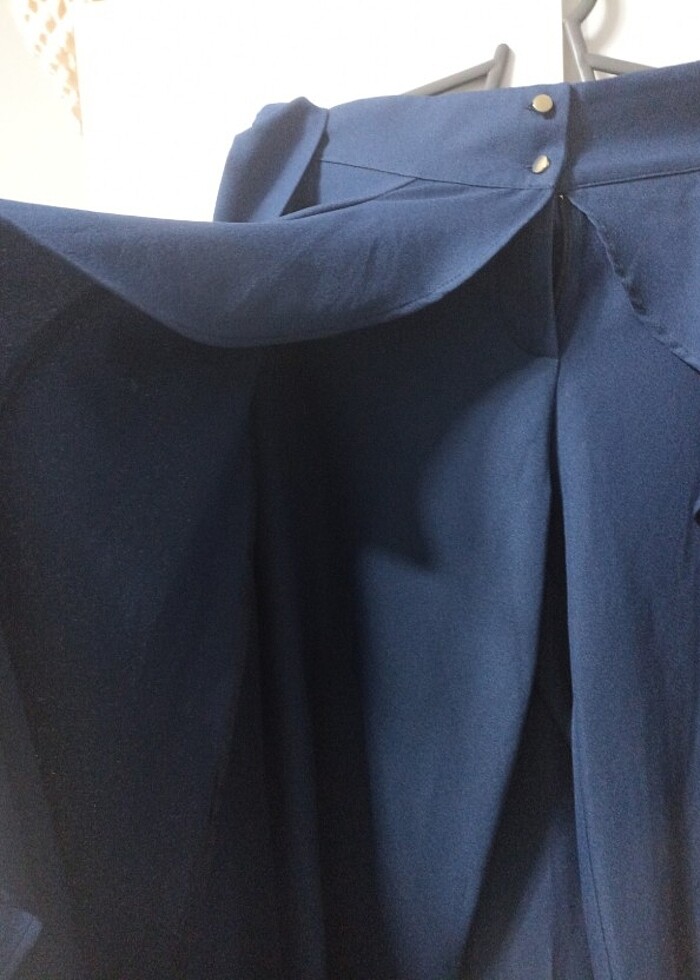 Önden pantalon arkadan etek görünümlü, pelerin gibi arkası.duruşu hoş