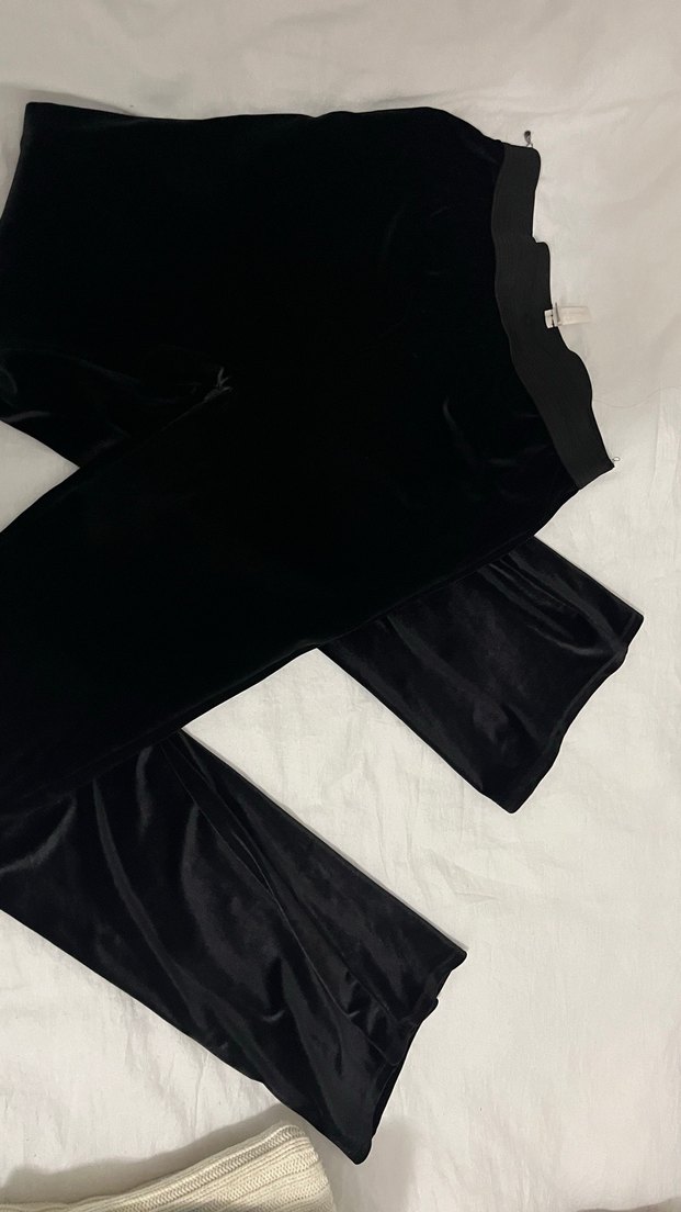 Drapeli detaylara sahip, saten dokulu, siyah ve vücuda oturan midi pantolon. Gotik ve avangart stil sunar, günlük kullanıma uygundur.
